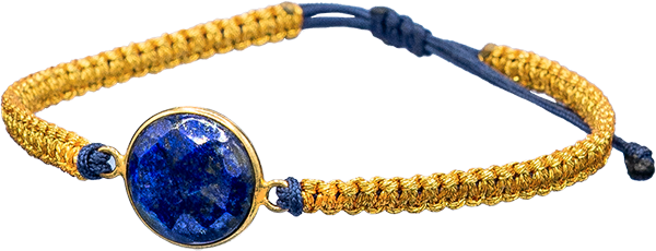 Notă: Această brățară este realizată manual cu piatra lapis lazuli și este disponibilă în auriu sau albastru.