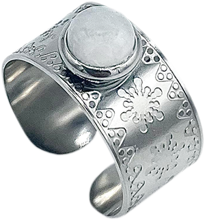 Notă: Mărimea este reglabilă. Inelul are montat piatra lunii, realizat din oțel inoxidabil argintiu.